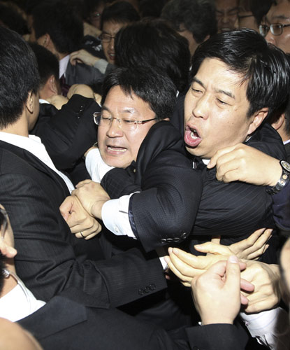 韓國議員爆沖突 使用滅火器當"武器"(4)