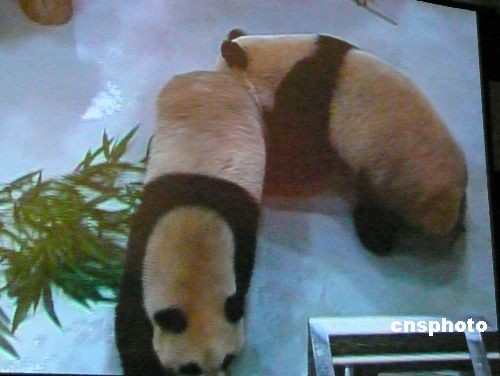 大陸贈臺大熊貓“團團”“圓圓”二十三日晚間抵達臺北的新家——臺北市立動物園新光特展館。圖為“團團”和往常一樣,喜歡跟在“圓圓”身后,如影隨形。