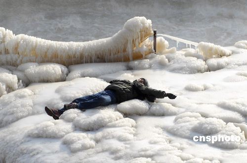 12月28日,游客們在觀賞冬日壺口瀑布冰封景觀。由于連日來的急劇降溫,地跨晉陜兩省的黃河壺口瀑布因上游冰凌的不斷涌入,使壺口瀑布形成“冰橋”,瀑布飛濺的水珠冰凍形成了各種各樣奇特的冰掛,吸引了眾多游客和攝影愛好者。
