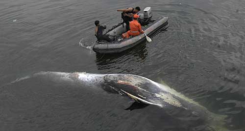 12月30日,菲律賓海岸警衛隊在馬尼拉灣附近打撈起一具罕見的小須鯨尸體。這只重約2噸長約10米的小須鯨的死因可能是與大型渡船相撞或者因為洋流的變化而迷路,這是馬尼拉灣附近首次浮現鯨魚尸體。