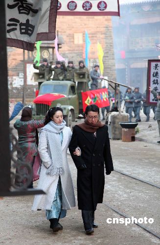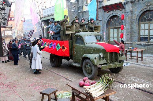 電視劇《闖關東2》在寒風中拍攝現(xiàn)場。中新社發(fā) 黃金昆 攝