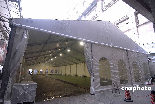 2009年1月5日,為迎接即將到來的春運,兩個高6.5米、占地面積達750平方米的臨時候車室出現在杭州火車站,這也是杭州站第一次在室外搭建候車室,杭州東站也將搭建近1500平方米的第三候車室。中新社發 引煒 攝