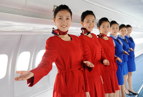 6名準空姐把自己在課堂上所學過的知識統統演示了一遍。