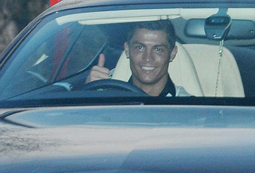C羅在車禍后,仍然到曼聯俱樂部進行訓練。圖為在離開訓練基地時,C羅面對鏡頭微笑示意。