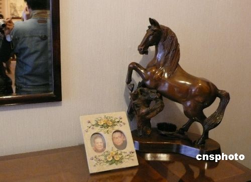圖為七海寓所門廳內擺放的蔣經國夫婦相框。中新社發 路梅 攝