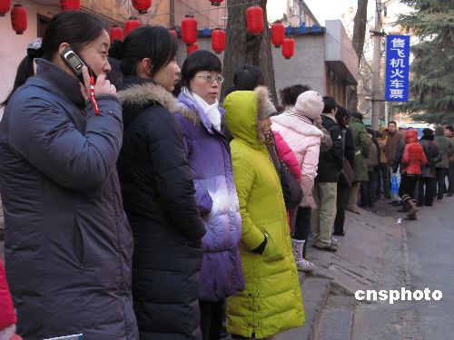 1月15日晨,北京西城區(qū)百萬莊南街,一飛機票火車票銷售點門前,欲購票的群眾在嚴(yán)寒中已排起長龍等待開門營業(yè)。春節(jié)前夕,假期返鄉(xiāng)回家過年客流出現(xiàn)高峰,最為緊俏的火車票一票難求。中新社發(fā) 鄒憲 攝