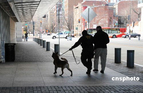當選為美國第四十四任總統的奧巴馬,將于三天后進駐白宮。由于情報顯示安全形勢嚴峻,美國負責保衛總統安全的美國K-9特種警察加緊在該區域內嚴格戒嚴,四處搜尋,力爭新總統就職平安。圖為美國K-9特種警察在白宮附近街道巡邏。