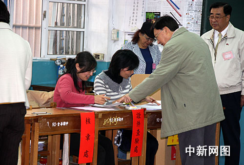 1月18日上午,備受全臺和外界關注的消費券開始在臺灣各發放所發放。圖為今天上午11時,臺灣行政部門負責人劉兆玄來到設于臺北市金華中學的消費券發放所領取消費券。陳立宇 攝