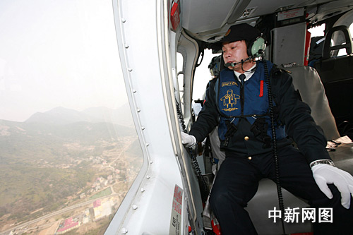 浙江海事局第一巡查執法支隊執法人員在空中巡視執法。 黃正勝 攝