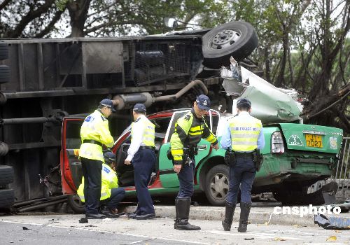 圖:香港落馬洲發生嚴重車禍 六人死亡(2)