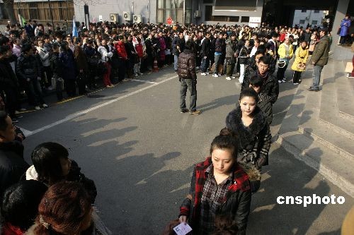 2月6日,最受社會關注、也是北京電影學院競爭最激烈的表演專業本科招生進入初試的第二天。由于2009年北影首次要求考生“素顏”應考,因此相比往年,現場濃妝艷抹、染著黃頭發、奇裝異服的考生并不多,個別化了淡妝的男女考生被要求先到衛生間洗臉后才能進考場。據悉,雖然2009年的招生人數由往年的30人增加到75人,但面對4234名報考者,淘汰率仍高達98.2%。表演專業初試將持續4天,2月11日上午公布參加復試人員的名單。
