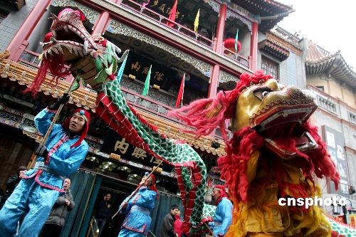 2月8日,首屆傳統元宵燈會在北京大柵欄商業街舉辦,這也是大柵欄恢復傳統元宵燈會的第一年。 “正月十五鬧花燈”自100多年前就是前門大柵欄的傳統民俗,元宵燈會上布置數十款樣式各異的花燈供游人欣賞,還特別邀請了民俗藝術家們為前來賞燈的游客獻上極具老北京民俗特色的精彩表演,以最大程度地展現老北京元宵燈會的場面。