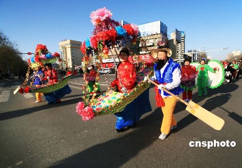 2月9日上午,新疆伊寧市舉行“鬧元宵”社火展演,來(lái)自全市20個(gè)鄉(xiāng)鎮(zhèn)、街道的1300余名農(nóng)牧民及社區(qū)工作人員走上街頭,舞龍獅、敲腰鼓、跳民族歌舞,敲出元宵節(jié)的快樂(lè),舞出了邊疆各族兒女的豪邁激情。中新社發(fā) 留光駐影 攝