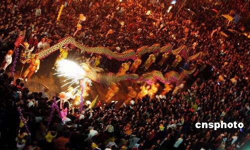 圖:數十萬泉州市民游火龍鬧元宵