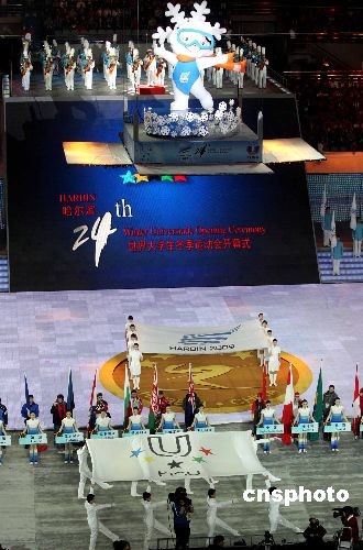 2月18日,第24屆世界大學(xué)生冬季運(yùn)動(dòng)會(huì)開(kāi)幕式在哈爾濱國(guó)際會(huì)展中心體育館隆重舉行。“冰雪、青春、未來(lái)”,哈爾濱大冬會(huì)在熊熊圣火的映襯下揭開(kāi)大幕,在未來(lái)10天內(nèi)來(lái)自45個(gè)參賽代表團(tuán)青春洋溢的冰雪健兒們將在賽場(chǎng)上展開(kāi)競(jìng)逐!本屆大冬會(huì)是中國(guó)首次承辦世界綜合性冬季體育盛會(huì),也是繼北京奧運(yùn)會(huì)和殘奧會(huì)后中國(guó)又一次承辦的國(guó)際性賽事。中新社發(fā) 富田 攝