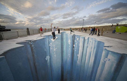 組圖:藝術家街頭大玩3D 街道頓成"深淵" (3)