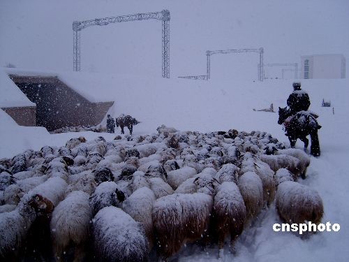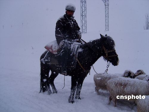 圖:暴雪中的哈薩克牧民