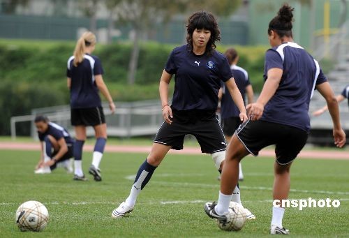 加盟美國洛杉磯太陽隊的中國女足隊員韓端三月二日與隊友一起參加新賽季開賽前的首次正式集訓。韓端是中國國家女子足球隊的主力前鋒,曾征戰過兩屆奧運會和女足世界杯等大賽。韓端加盟的洛杉磯太陽隊擁有一批世界頂級水平的女足球員,包括世界“足球小姐”巴西前鋒瑪塔。中新社發 張煒 攝
