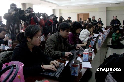 3月4日,因“三聚氰胺”事件而破產的中國乳業巨頭石家莊三鹿集團股份有限公司掛牌拍賣,北京三元集團毫無懸念地入主三鹿。圖為關注這一并購事件的中外媒體。中新社發 翟羽佳 攝
