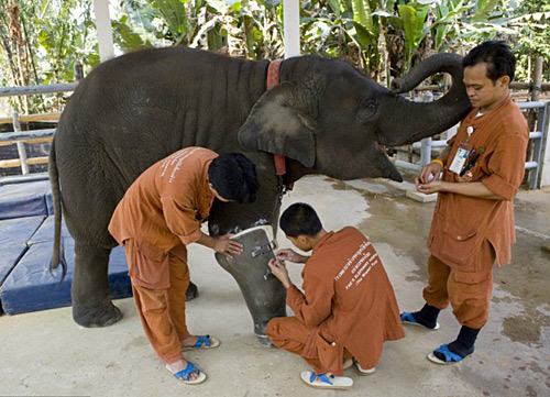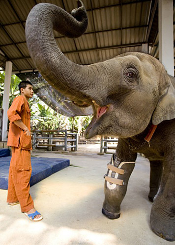 圖:大象被炸斷腿 安假肢后行動自如(2)