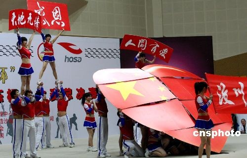 圖為四川汶川地震災區阿壩師專的學生表演健美操。中新社發 錢興強 攝