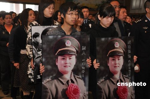 3月18日上午,鄭州市各界5000多人隆重悼別英雄女警王玉榮,為鄭州公安女英雄、全國公安一級英模、三級警監、鄭州市公安局中原分局原副局長王玉榮送行。13年前王玉榮冒著生命危險從身帶炸藥包歹徒手里解救出28名兒童和2名幼師人質并機智將歹徒擊斃。后因積勞成疾與病魔頑強抗爭7年后于2009年3月14日病逝,英年48歲。
