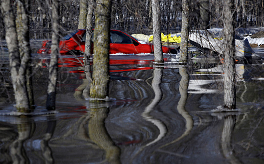 美國當(dāng)局介紹,由于季節(jié)性融雪注入紅河,使紅河的水位于27日已超過112年前創(chuàng)下的12.2米最高水位,達到12.4米。位于紅河兩岸的明尼蘇達州穆爾黑德市和北達科他州法戈市首當(dāng)其沖。當(dāng)局原先預(yù)計水位會于28日進一步上升至13米,超過保護法戈市的洪堤高度。但由于天氣寒冷,低溫持續(xù),水位上升速度放緩,現(xiàn)在預(yù)測水位要到29日才會突破13米。