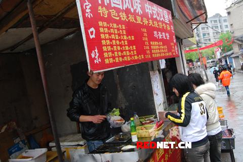 28日下午,毛毛雨。記者到長(zhǎng)沙墮落街一探究竟,在問明來意后,帥哥淡淡一笑稱自己也聽房東說了紅網(wǎng)論壇上關(guān)于他的事,還告訴他在網(wǎng)上火了,自己感到很意外。帥哥自稱姓包,23歲,來自河南信陽農(nóng)村一單親貧苦家庭。對(duì)于為何年紀(jì)輕輕來賣燒餅的疑問,小包介紹說,這都是生活所迫,沒有辦法的事,并介紹了一些自己鮮為人知的身世。
