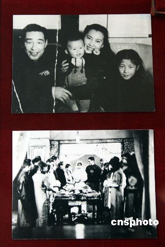 4月2日,上海福壽園“祭先烈、敬先賢、憶先人”清明月紀(jì)念展開幕,百余位建國英雄、名人精英、藝術(shù)大師的生平資料和實物史料亮相。圖為上世紀(jì)三十年代“電影皇帝”金焰與著名電影藝術(shù)家秦怡的結(jié)婚場景照(下圖)以及他們夫婦與孩子的合影(上圖)首次公開展覽。金焰,1910年出生于韓國漢城,代表作品《風(fēng)流劍客》、《野草閑花》、《一剪梅》等。1948年金焰與秦怡結(jié)婚。1983年金焰離開人世。 中新社發(fā) 潘索菲 攝