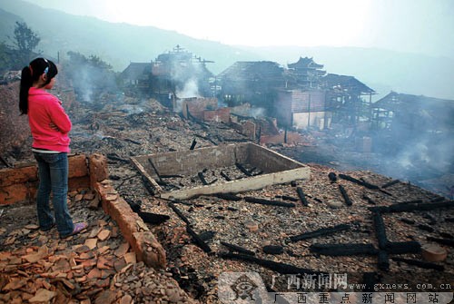 5月10日晚,廣西柳州三江侗族自治縣獨峒鄉知了村知了屯發生火災,68戶人家的房屋被燒毀,另有69戶房屋因救火被破拆。據當地民政部門初步統計,直接經濟損失達130多萬元。