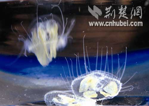 據(jù)介紹,當日下午,丹江口市新港村村民陳文新,在漢江中發(fā)現(xiàn)一種硬幣大小、通體晶瑩透亮的生物伸縮漂游,總數(shù)約有4000只。經(jīng)該市水產(chǎn)局副局長、水產(chǎn)工程師熊治邦現(xiàn)場鑒定,它們是世界極危生物——桃花水母。