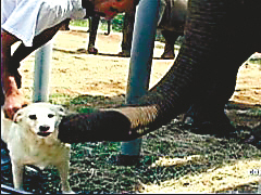 工作人員從來不知道它們的感情到底有多深,直到去年的一天,流浪狗貝拉的脊椎受了傷,它既無法走路,也無法搖動尾巴,而大象塔拉一直不離不棄地陪伴在貝拉的身邊。工作人員見狀后,立即將貝拉抱進了大象庇護所辦公室樓上的“臨時病房”進行治療,結果他們發現在長達三個小時里,大象塔拉都寸步不離地守候在辦公室外面,并不時發出叫聲,呼喚自己的“狗友”。
