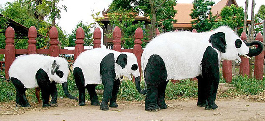 泰國大象扮熊貓