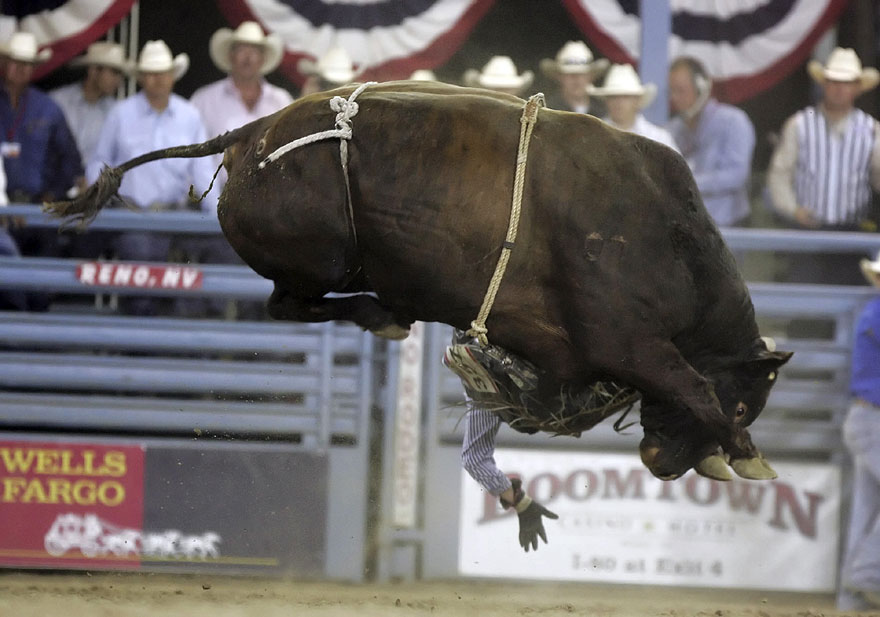 美國騎牛大賽"人仰牛翻"令人驚心動魄