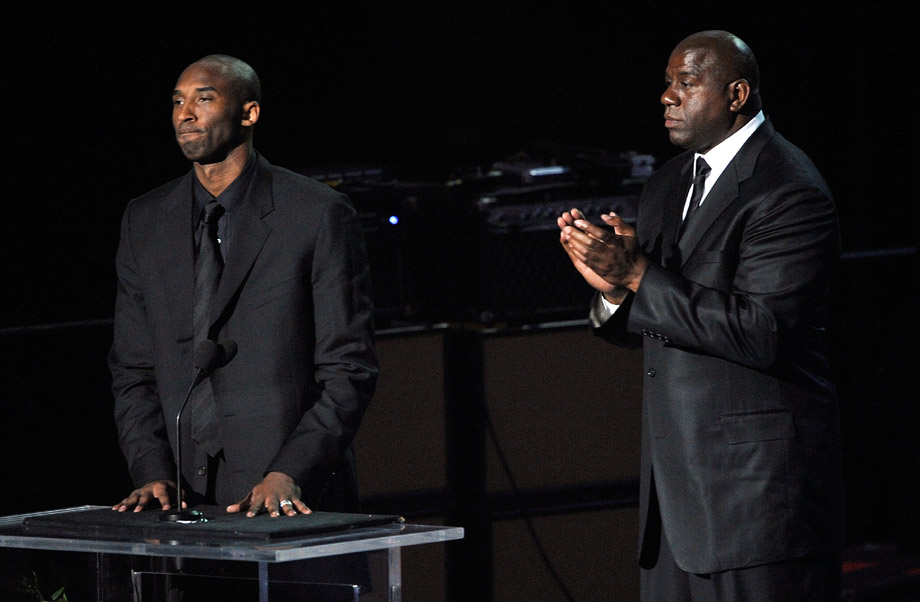 美國籃球明星科比和約翰遜在杰克遜的追思會上致辭,深情回憶了和杰克遜從相識到變?yōu)楹门笥训姆N種難忘經(jīng)歷和美好時光。