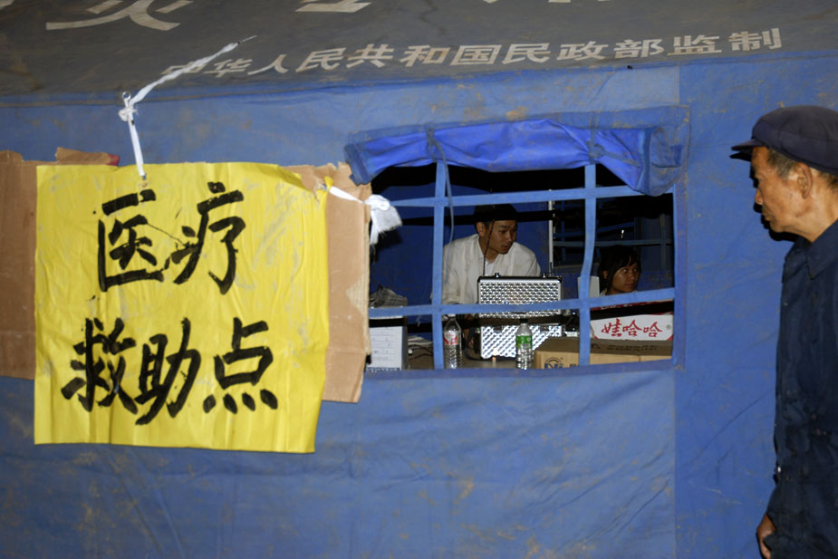 圖為首批進入重災區官屯鄉官屯村的醫療隊在災民臨時安置點設置了醫療救助點。中新社發 保旭 攝