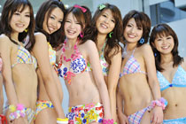 7月20日,在日本東京的一家購(gòu)物中心,靚麗性感的模特泳裝走秀,慶祝日本的“海洋日”。每年7月的第三個(gè)星期一為日本的“海洋日”。