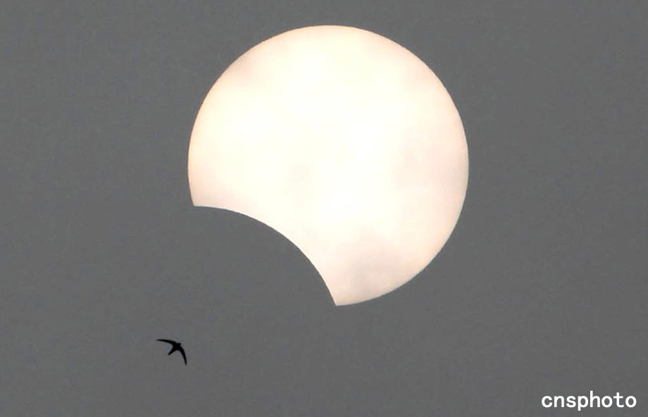 7月22日上午10點28分,北京上空出現(xiàn)的燕子爭相追逐日偏食奇觀。