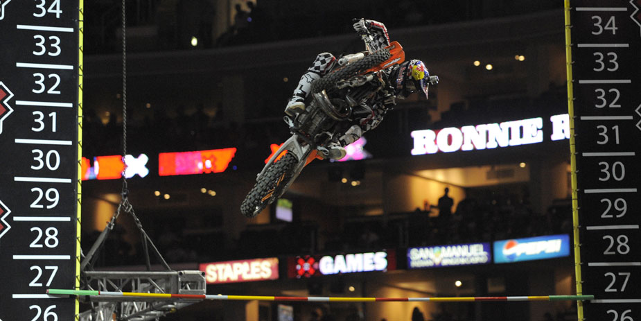 當地時間7月30日,美國洛杉磯舉行了一場極限摩托大賽,各路好手上演了摩托車跨越高桿的精彩表演。