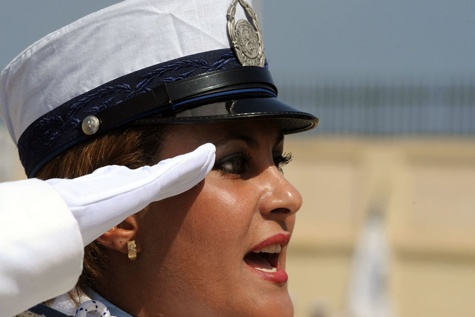 圖為女警察學(xué)員在畢業(yè)典禮上行進(jìn)。