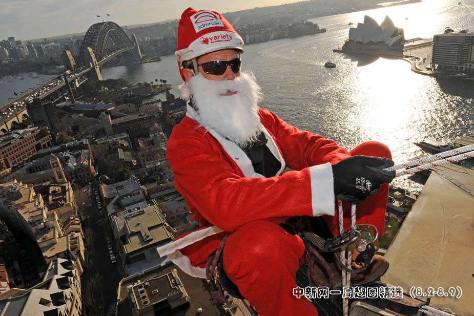8月5日,澳大利亞5名男子身著圣誕老人服飾從悉尼歌劇院旁一高層酒店樓頂“從天而降”。點(diǎn)擊觀看詳細(xì)內(nèi)容