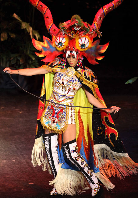 8月10日,2009年世界小姐大賽上,來自84個(gè)國家和地區(qū)的佳麗進(jìn)行民族服飾的展示,各國佳麗分別穿著含有自己民族風(fēng)格元素的時(shí)尚晚裝亮相,現(xiàn)場頓時(shí)色彩斑斕,美不勝收。