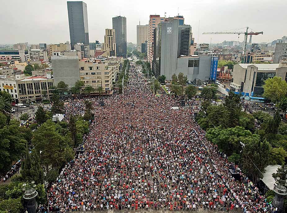 8月29日,逾萬名墨西哥人在墨西哥城廣場同時跳舞,用以紀念邁克爾·杰克遜第51個“生日”,同時也試圖打破同時跳舞人數最的吉尼斯世界紀錄。圖片來源:中國新聞網