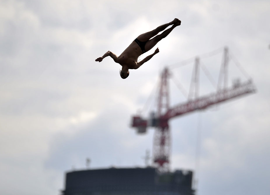 當(dāng)?shù)貢r間8月29日,世界懸崖跳水系列賽在德國漢堡舉行。圖片來源:中國新聞網(wǎng)