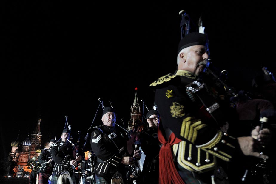 9月4日晚,俄羅斯莫斯科紅場舉行了俄羅斯國際軍樂節開幕前夕的總彩排。首屆俄羅斯國際軍樂節將于9月5日至10日在莫斯科紅場舉行。圖為英國軍樂團正在進行彩排。
