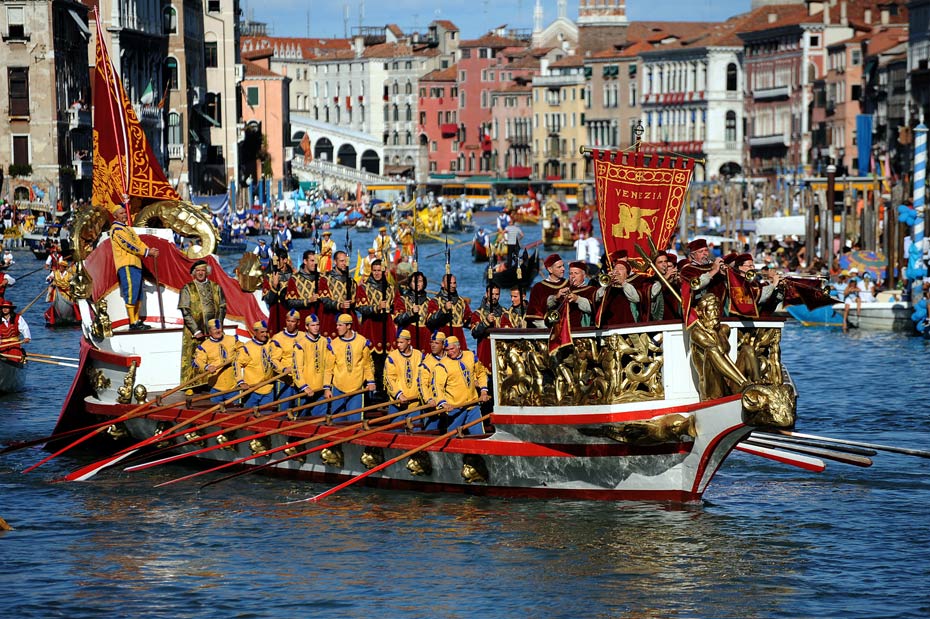 賽舟會:是意大利一項具有悠久歷史的節日,每年的9月第一個星期日在威尼斯大運河上舉辦蔚為壯觀的彩船游行,隨后是剛多拉小船和其他船只的賽舟會,威尼斯的劃船好手都會聚集到大運河上參加傳統賽舟會,許多人換上富有古典韻味的服裝,或在岸邊觀賽,或泛舟水上,整個城市似乎重回文藝復興時期。