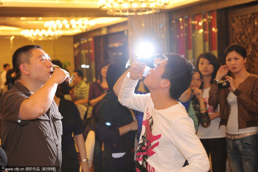 第二十七屆“飛天獎”9月8日在水立方落幕。《士兵突擊》獲得多項飛天獎之后在北京舉辦慶功會,王寶強、張國強、段奕宏出席。王寶強喝酒毫不含糊,每次有人敬酒都是一干而盡,很是豪爽。朱棣/CFP