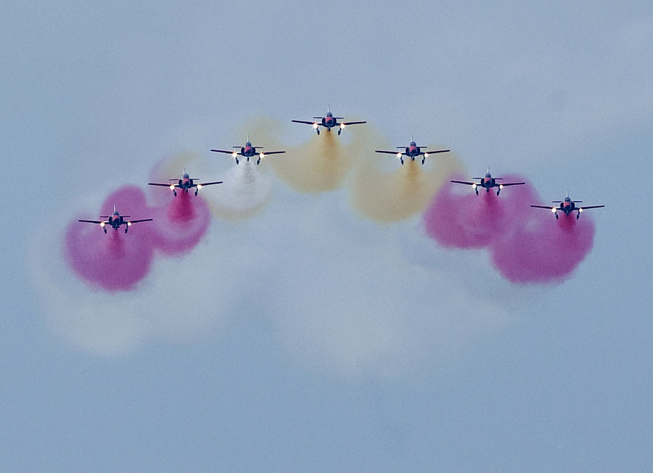 9月13日,西班牙南部加地斯地區舉行了一場別開生面的飛行表演。這次飛行表演使用的是二戰時期的老式飛機。圖片來源:中國新聞網