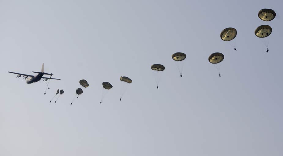 9月19日,英國空降兵在荷蘭埃德附近進行傘降表演,紀念二戰期間盟軍最大規模的空降作戰——“市場花園”行動65周年。