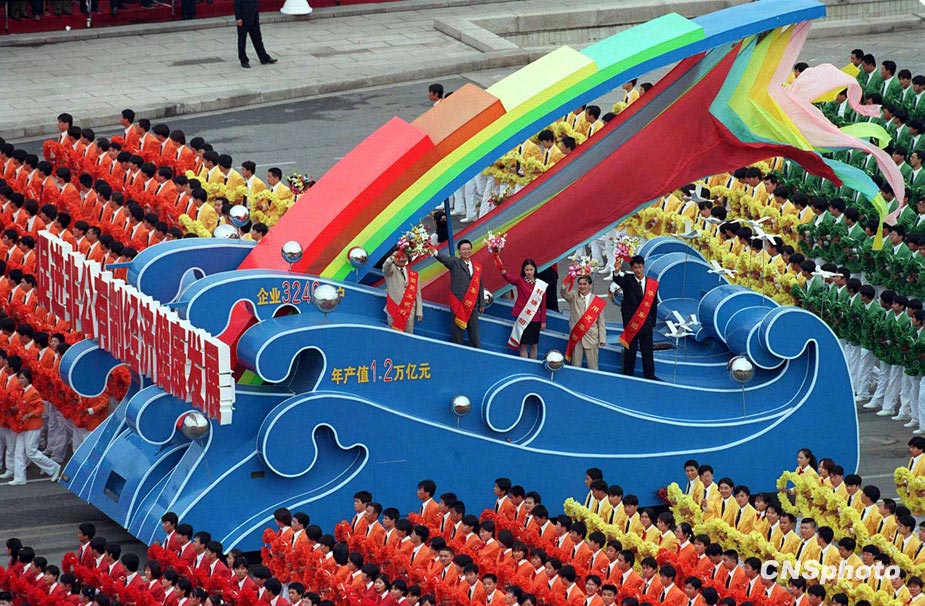 圖為1999年國慶群眾游行隊伍中的“國民經濟發展新的活力” 方陣。中新社發 任晨鳴 攝